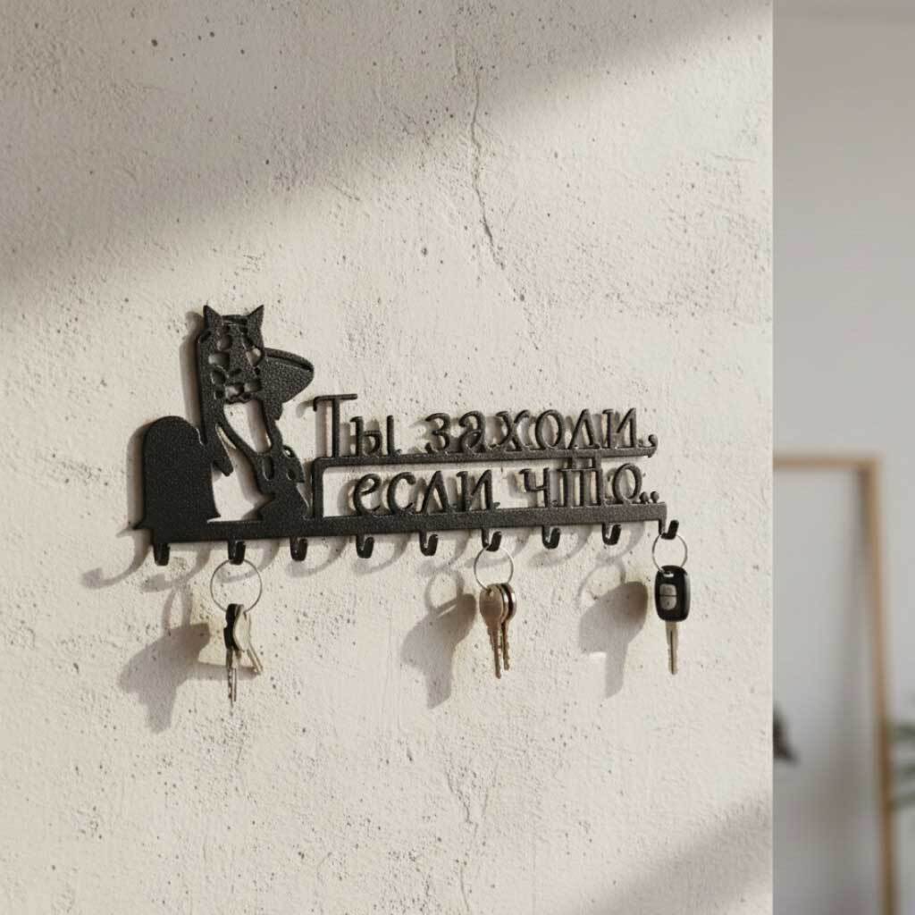 В комплекті: Ключниця на 6 гачків, саморізи з дюбелями та заглушками